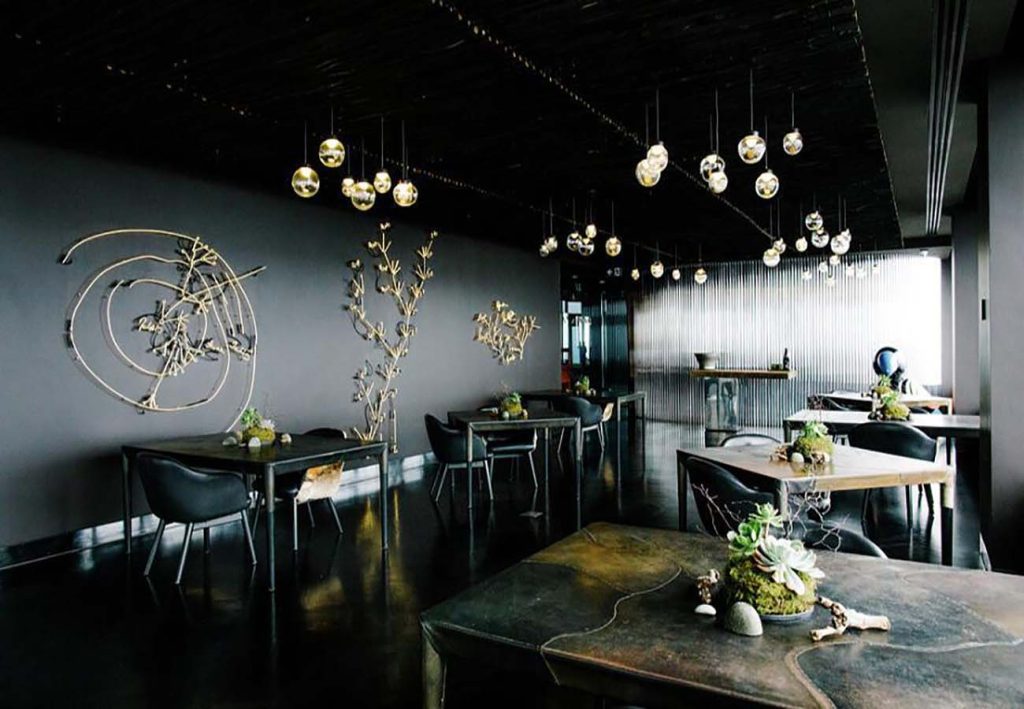 Understated luxury. Dark walls, ambient lighting, and quiet classical music create a hushed reverence for what’s coming to your table. It feels exclusive but not intimidating—like a culinary temple built for two.